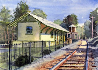On October 1 The newly built Sparta Station will be inaugurated. I will be there to do a plein air painting of the building or the event. I haven't decided. I did a few paintings of the station in the past, one of the old station and one when it was being refurbished. Then it burnt down. I am happy that the Dermody family has put in all the effort to rebuild and open the venue to artists and the public.. Here is one painting from way before the fire. and one that I did recently.